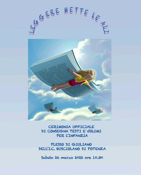 “Leggere mette le ali” é lo slogan adottato dal plesso di Giuliano dell’Istituto Comprensivo Busciolano di Potenza, per la rinascita della Biblioteca scolastica. La scuola dell’infanzia e la scuola primaria del plesso, da sempre promotori della lettura spontanea e attuatori di percorsi didattici di incentivazione della lettura, hanno riattivato i laboratori con angoli dedicati, potendo usufruire di ampi spazi idonei. Dall’inizio dell’anno scolastico, la scuola ha aderito non solo alle iniziative promosse dall’Istituto stesso, ma anche a progetti di rilevanza comunale e nazionale. Tra questi, il progetto nazionale #ioleggoperche, che ha messo in connessione la comunità locale con i Lions del C.L. “Potenza Host”. I Lions del C.L. “Potenza Host”, attivi da sempre per il sostegno alle attività sociali e culturali, hanno intercettato e sostenuto questa esigenza di arricchimento e promozione culturale espressa dalla scuola, provvedendo con la donazione di 47 volumi e testi specifici per l’età degli alunni frequentanti i due ordini di scuola. Nell’età evolutiva, la lettura porta ad immaginare nuovi mondi ed a volare con la fantasia, aprendo la mente all’acquisizione di nuovi saperi ed all’apprendimento di conoscenze e valori universali.
