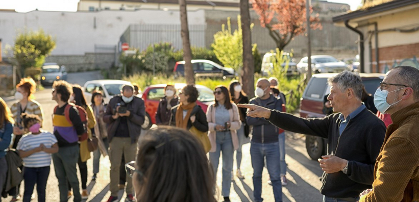 Antonella Iallorenzi, direttrice artistica e mediatrice del progetto “Extra Moenia”, ha spiegato l’importanza del momento inaugurale: «Non potevamo non avviare il progetto muovendoci dal luogo oggetto della ricerca, percorrendolo e analizzandolo attraverso la voce diretta dei cittadini del quartiere. È a partire dal loro racconto che abbiamo già iniziato a immaginare e pensare quello che sarà Extra Moenia, una striscia di terra adesso vuota che verrà riempita dalle visioni di tutti.»