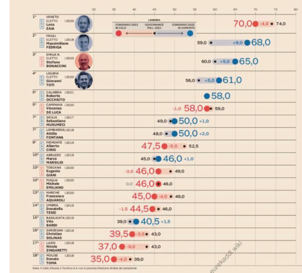 Il sondaggio del Sole 24 Ore vede la risalita del presidente Bardi. Da ultimo a quartultimo ma soprattutto è uno dei pochi presidenti di Regione in crescita. Effetto gas gratis a tutti i lucani?