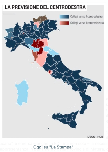 Il trend è nazionale e riguarda anche la Basilicata: oggi su “la Stampa” i risultati di un sondaggio commissionato dal Centrodestra vedono la coalizione di Meloni, Salvini e Berlusconi in netto vantaggio in tutta Italia.