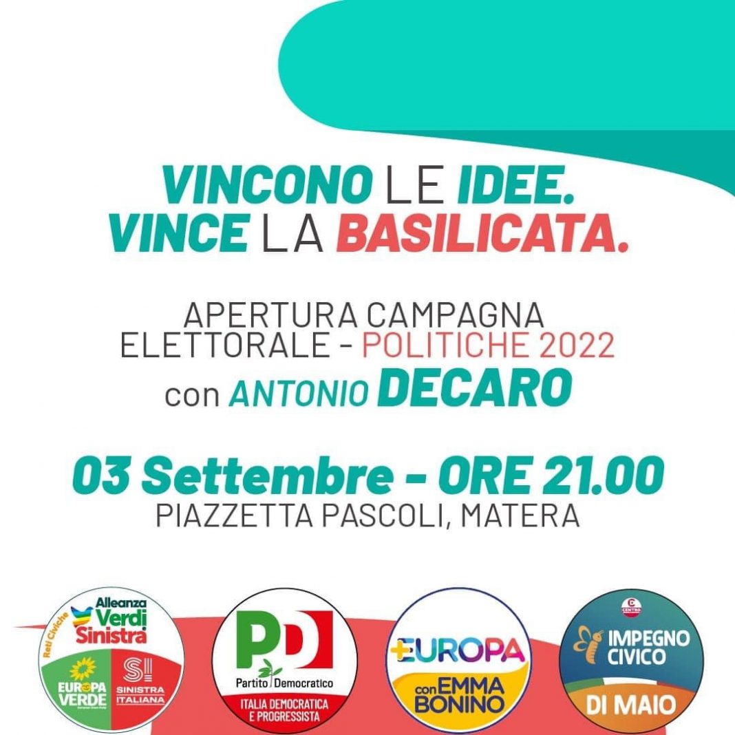 Dopo diversi incontri nei territori inauguriamo ufficialmente la campagna elettorale, in piazza, sabato 3 settembre 2022 a Matera.