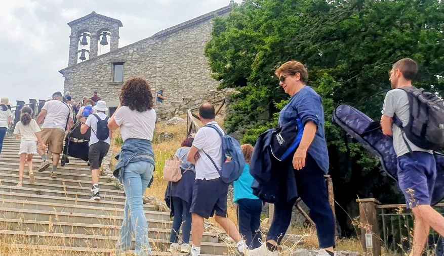 Sollecitazioni che sono state vissute come Domanda e Preghiera nel cammino al Santuario Maria Santissima del Monte Saraceno, a pochi chilometri dal centro abitato di Calvello, arroccato sulla cima di uno sperone roccioso dove la Vacanza ha proposto il gesto per conoscere ed incontrare identità, tradizione e religiosità le quali connotano le umanità che risiedono in questa parte della Basilicata ricca, come in altre, di storia e devozione. Il tutto accolto dal parroco di lì, Don Pasquale…,dopo che una guida del posto ha raccontato il valore di quelle improntee il senso religioso che ruota intorno e sostiene il Santuario.